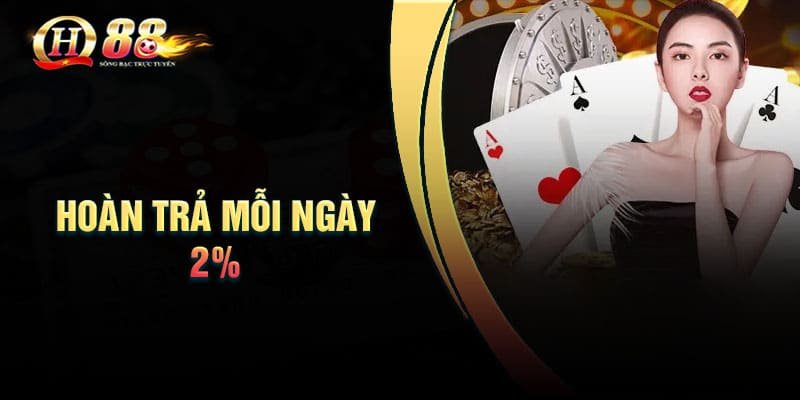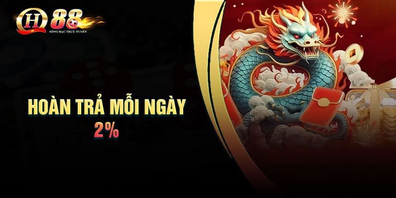Hoàn trả mỗi ngày 2% được biết đến là chương trình khuyến mãi hàng đầu của nhà cái đổi thưởng trực tuyến uy tín QH88. Mỗi ngày, người chơi đều sẽ có cơ hội tận hưởng các ưu đãi khủng cho mình và có được những giây phút giải trí tuyệt vời.